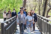 (뉴스핏 = 김호 기자) 의정부시는 7일 ‘추동 숲정원’ 조성 현장을 방문해 추진 현황을 점검하고, 지역 주민의 의견을 수렴했다. 능골 무장애길 입구부터 하늘마당, 잣나무쉼터, 물놀이장까지 약 6.0km 구간을 따라 현장을 확인하며 건의사항을 청취했다. 추동 숲정원은 약 22만 평 규모의 추동공원을 도심 속 생태 공간이자 산림휴양 공간으로 조성하는 사업이다. 현재 42.2ha 규모의 숲가꾸기와 8.8km 구간의 숲길 정비, 과학도서관 및 물놀이장 입구와 테마정원 조성을 완료했다. 하늘마당과 잣나무쉼터, 순환산책로(무장애길 1.4km, 숲둘레길 2.7km) 조성사업은 착공해 올해 상반기 준공을 목표로 추진 중이다. 특히 공원 정상부인 효자봉에 들어설 ‘하늘마당’은 주변 경관을 한눈에 조망할 수 있는 전망 공간으로 조성할 계획으로, 일출‧일몰을 감상할 수 있는 장소로 활용될 전망이다. ‘잣나무쉼터’는 잣나무와 전나무 숲 속에 목재 데크와 해먹 등을 설치해 시민들이 자연 속에서 온전히 쉴 수 있는 힐링 공간으로 꾸밀 예정이다. 시는 현장 관리와 안전 확보를 위해 해빙기 숲길 토사 유출 여부와 식재 생육 상태를 점검하고, 상시 모니터링과 보수 작업을 실시하고 있다.