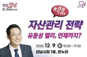 (뉴스핏 = 김호 기자) 성남시는 오는 12월 9일 오후 3시 30분~5시 30분 시청 1층 온누리에서 ‘자산관리 전략’을 주제로 한 올해 희망성남 토크콘서트 마지막 강연을 연다. 앞선 11월 19일 ‘부동산 전망과 내 집 마련 전략(고종완 한국자산관리연구원장)’에 이은 경제 특강 2탄이다. 이날(12.9) 초빙 강사는 김광석 한국경제산업연구원 경제연구실장이다. 강연자는 ‘유동성 랠리’와 빠르게 변화하는 경제 환경 속에서 국내외 주요 경제 현안에 대해 알기 쉽게 설명한다. 이와 함께 유동성 장세의 지속 여부, 실질적인 투자 운용 방향, 향후 경제전망, 자산관리 전략에 관한 강연을 한다. 김광석 실장은 ‘경제 읽어주는 남자’ 저자로 알려진 경제전문가다. 현재 한양대학교 겸임교수로도 재직 중이며, 에너지경제연구원 전문연구원, 현대경제연구원 선임연구원, 삼정KPMG 경제연구원 수석연구원 등으로 활동했다. 강연은 무료로 진행되며, 성남시 평생학습 통합 플랫폼 ‘배움 숲’ 홈페이지를 통해 선착순 600명까지 신청할 수 있다.