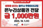 (뉴스핏 = 김호 기자) 파주시는 지난 1일 대한적십자사 서울중앙혈액원에 1천만 원 상당의 헌혈장려지원금 상품권을 전달했다. 시는 안정적인 혈액 공급 기반을 마련하고 지역사회 내 헌혈 참여문화를 확산하기 위해 지난달 헌혈추진협의회를 구성 회의를 개최했으며, 회의 결과에 따라 관내 헌혈자 대상 인당 1만 원 상당의 온누리상품권을 지급할 예정이다. 특히 파주시는 말라리아 헌혈 제한 지역으로, 관내 헌혈의집이 없어 헌혈버스를 통해서만 헌혈이 가능하고 동계기간인 11월~3월에 한해 전혈헌혈이 허용되는 등 여러 제약이 있다. 이러한 어려운 여건 속에서도 시민들의 헌혈 참여를 확대하기 위해, 국내 말라리아 헌혈 제한 지역 중 최초로 헌혈장려금을 지원하게 됐다. 이한상 파주보건소장은 “헌혈장려지원금 지급이 혈액 수급 안정화와 헌혈 참여문화 확산에 기여하는 계기가 되길 기대한다”라고 밝혔다.