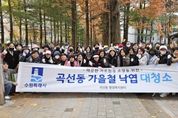 (뉴스핏 = 김호 기자) 수원시 권선구 곡선동 행정복지센터는 24일, 가을을 맞아 낙엽 대청소를 실시했다. 이번 대청소는 곡선동 직원들과 환경관리원, 통장협의회 단체원 등 50여 명이 참여했으며 권선3지구의 아파트와 아파트 사이 보행로를 중심으로 진행했다. 참여한 봉사자들은 여러 조로 나뉘어 낙엽을 청소하고 보행 환경 미관을 개선해 깨끗한 거리 조성을 위해 적극 힘썼다. 대청소에 참여한 어느 단체원은 “단체원들과 함께 청소하여 깨끗해진 거리를 보니 마음이 뿌듯하고 보람이 있었다”라고 소감을 전했다. 김미현 동장은 “낙엽 청소에 적극 참여해주신 단체원 등 모든분들께 깊이 감사드리며 급격한 기온하락으로 낙엽이 많이 떨어져 다 함께 낙엽 대청소를 추진해 깨끗하고 안전한 곡선동이 됐다”라며 “다가오는 동절기를 대비하여 주민들의 안전한 보행환경을 만들기 위해 최선을 다하겠다”라고 전했다.