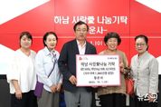 (뉴스핏 = 김호 기자) 지난 3일, 청정하남시니어협회(청시회)는 성금 100만원을 하남시에 전달하고 기탁식을 가졌다. 이날 기탁식에는 이현재 하남시장을 비롯해 박규섭 회장 등 관계자들이 참석하여 자리를 빛냈다. 박규섭 회장은 “추석 명절을 맞아 소외된 이웃들에게 정을 나누고, 조금이나마 도움이 되길 바라며 경제적으로 어려운 시기를 잘 극복해 나갔으면 한다”고 말했다. 이현재 하남시장은“ 따뜻한 마음을 나눠주시는 청정하남시니어협회에 깊이 감사드리며 기탁해 주신 성금은 관내 어려운 이웃에게 소중히 전달하겠다”고 전했다. 이날 기탁된 성금은 관내 취약계층에게 배부될 예정이다.