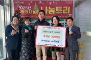 (뉴스핏 = 김호 기자) 남양주시는 9일 금곡동 소재 ㈜서울빙과총판이 진건읍 위기가구를 위한 후원금 300만 원을 전달했다고 밝혔다. 이번 후원은 진건읍 지역사회보장협의체가 연말연시를 맞아 운영 중인‘진건읍, 사랑의 나눔존 나눔트리’나눔 릴레이의 일환으로 추진됐다. 전달된 후원금은 경기사회복지공동모금회를 통해 진건읍 지역사회보장협의체로 지정 기탁되며, 2026년부터 위기가구 신속 응대 사업 ‘바로지원 꾸러미’에 활용된다. 이 사업은 위기 상황에 놓인 가구에 식료품 등 꾸러미를 신속하게 전달해 일시적인 위기를 완화하고 생활 안정을 도모하는 것을 목표로 한다. 엄관용 대표는 “지역사회와 함께 성장해 온 기업으로서 어려운 이웃에게 실질적인 도움을 되고자 후원을 했다”며 “이번 후원이 위기가구를 위한 신규 사업에 활용된다고 생각하니 더욱 뜻깊다”고 전했다. 김학철 진건퇴계원행정복지센터장은 “민간의 따뜻한 나눔이 위기가구를 신속히 지원하는 중요한 밑거름이 된다”며 “앞으로도 민관협력을 바탕으로 촘촘한 복지 안전망을 구축해 나가겠다”고 말했다. 박현정 진건읍 지역사회보장협의체 위원장은 “이웃을 먼