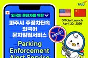 (뉴스핏 = 김호 기자) 파주시는 4월 20일부터 외국인 운전자를 대상으로 한 ‘주정차 단속 외국어 문자 알림 서비스’를 시행한다. 이번 서비스는 주정차 금지 구역에 차량을 세운 운전자에게 실시간으로 단속 상황을 안내해 자발적인 차량 이동을 유도함으로써 과태료 부과를 사전에 방지하기 위한 기존 제도를 외국인까지 확대한 조치로, 최근 파주시 내 외국인 거주자와 운전자가 꾸준히 증가하는 추세를 적극 반영한 결과다. 2026년 3월 기준 외국인 정보 공동이용 시스템 자료에 따르면 파주시 등록 외국인은 19,841명으로 확인됐으며, 지난해 파주시에서 외국인 소유 차량의 주정차 위반 사례가 1,155명에 걸쳐 총 1,797건 발생한 것으로 집계됐다. 시는 이러한 현실을 고려할 때 외국인 운전자의 단속행정 이해를 돕고자 외국어 알림 서비스 도입이 필요하다는 판단이다. 시는 통계상 비중이 높고 범용성이 넓은 영어와 중국어 안내 서비스를 도입하기로 결정했다. 해당 서비스는 시행일 이후 차량 소유자의 주소지와 상관없이 파주시를 운행하는 모든 차량을 대상으로 온라인으로 신청할 수 있다. 또한 파주시청 누리집에서 한글 검색어뿐만