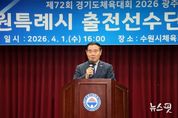 (뉴스핏 = 김수진 기자) 수원특례시의회는 1일 수원시체육회관 2층 대회의실에서 열린 '제72회 경기도체육대회 수원시 선수단 결단식'에 참석해 선수단을 격려하고 선전을 기원했다. 이번 결단식은 오는 4월 16일부터 18일까지 광주시에서 열리는 제72회 경기도체육대회를 앞두고 수원시 선수단의 각오를 다지고 사기를 높이기 위해 마련됐다. 이날 행사에는 수원특례시의회 의장을 비롯해 수원시장, 수원시체육회장, 체육회 임원, 선수단 등 약 180여 명이 참석했으며, 출전보고와 단기 수여, 선수대표 선서 등이 진행됐다. 특히 수원시는 총 473명의 선수단이 출전해 27개 종목에서 기량을 겨룰 예정이다. 수원특례시의회는 결단식에 참석해 선수단의 사기를 북돋고, 시민과 함께하는 체육도시 수원의 위상을 높이기 위한 응원의 뜻을 함께했다. 이재식 의장은 축사를 통해 “그동안 흘린 땀과 노력이 결실을 맺을 시간이 다가왔다”며 “수원 선수단이 최고의 기량과 스포츠 정신으로 대회에 임해 시민들에게 큰 감동을 전해주길 바란다”고 말했다. 이어 “결과도 중요하지만 정정당당한 경기와 서로를 믿는 팀워크가 더욱 빛날 것”이라며