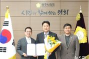 (뉴스핏 = 김수진 기자) 이상복 오산시의회 의장이 24일 오산시지역아동센터 아동들이 수여하는 감사패를 받았다. 본회의장에서 열린 감사패 전달식에는 오산시지역아동센터 연합회 조순희 회장을 비롯한 각 센터장과 센터 소속 아동 등 30여 명이 참석했다. 이번 감사패는 지역아동센터 아동들의 성장과 밝은 미래를 위해 지속적인 관심과 지원을 아끼지 않은 의정활동에 대한 감사의 뜻을 담아, 아동들이 직접 제작하고 문구를 작성한 것으로 알려졌다. 이 의장은 “아이들이 직접 만든 감사패를 받게 되어 더욱 뜻깊고 감사하다”며 “앞으로도 아이들의 눈높이에서 정책을 고민하고, 더 따뜻한 지역사회를 만들어 가는 데 최선을 다하겠다”고 소감을 밝혔다.