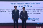 (뉴스핏 = 김수진 기자) 경기주택도시공사(GH)는 3일 GH 수원 본사 9층 역량개발센터에서 한국수자원공사(K-water)와 함께 ‘광명시흥 도시첨단산업단지 수열에너지 집단공급 시범사업’ 추진을 위한 실시협약을 체결했다고 밝혔다. 이 자리에는 양 기관 관계자 약 30명이 참석했다. 이번 사업은 GH가 조성 중인 광명시흥 도시첨단산업단지에 수열에너지를 공급하기 위한 국내 최초의 산업단지 단위 수열에너지 적용 사례로, 산업단지 조성 단계부터 수열 공급관로를 선제적으로 설치해 향후 입주기업의 냉난방 에너지원으로 활용할 수 있도록 한 것이 특징이다. 수열에너지는 수온이 여름철에는 대기보다 낮고 겨울철에는 높은 물리적 특성을 이용해 냉난방에 활용되는 고효율·친환경 에너지로, 기존 중앙 냉난방 장치(흡수식 냉온수기) 대비 약 35%의 에너지 절감 효과가 있다. 또한 냉각탑이나 실외기 설치가 필요 없어 공간 효율성과 건물 미관도 동시에 확보된다. 협약에 따라 양 기관은 에어컨 약 3,000대를 대체할 수 있는 3,000RT(냉동톤) 규모의 수열에너지를 안정적으로 공급할 수 있는 전용 공급관로를 설치하고, 향후 20년간 운영계획 수립 및 에너지 절감 효과 검증에도 공동