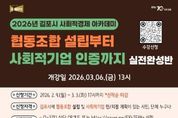 (뉴스핏 = 김수진 기자) 김포시가 사회문제 해결을 위한 참신한 아이디어와 실행력을 갖춘 사회적경제기업 육성을 위해 ‘2026년 김포시 사회적경제 아카데미’를 개설하고, 오는 3월 3일까지 수강생을 모집한다. 이번 아카데미는 평소 사회적경제에 관심 있는 김포시민은 물론, 연내 협동조합 설립과 사회적기업 인증을 준비 중인 관내 기업, 단체라면 누구나 신청할 수 있다. 교육 과정은 ▲사회적기업 개념 및 인·지정 요건 ▲협동조합 개념, 설립 절차 및 인가 요건 ▲2026년 지원제도 등 사회적경제에 대한 기본 개념을 습득하고, 연내 진입을 위한 사전 준비가 가능하도록 실전형으로 구성했다. 특히 전문가 1:1 멘토링을 통해 ▲사업 아이템의 경쟁력 및 지속가능성 진단 ▲정관, 사업계획서 등 필수서류 작성 ▲심사 및 현장실사 대비 전략 등 기업 맞춤형 컨설팅이 후속으로 지원될 예정이다. 수강신청은 3월 3일까지 온라인으로 가능하며, 자세한 사항은 김포시청 홈페이지를 참조하거나 김포시청 지역경제과로 문의하면 된다. 김포시는 ‘일자리창출을 위한 재정지원’을 비롯해 ‘전략모델 개발비’, ‘교육·컨설팅’,