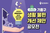 (뉴스핏 = 김수진 기자) 용인특례시 기흥구는 오는 6일부터 5월 4일까지 ‘2026 기흥구 생활불편개선 제안 공모전’을 개최한다. 이번 공모전은 일상에서 시민이 직접 체감하는 불편사항을 발굴하고, 이를 개선할 수 있는 다양한 방안을 모색하고자 마련됐다. 주제는 일상생활에서 체감하는 생활 불편 개선 아이디어다. 시설·환경 등 각종 생활 불편 사항이나 비효율적인 행정이나 규제 등 다양한 분야의 의견을 받는다. 생활 불편에 관심 있는 누구나 참여할 수 있다. 시 누리집 ‘용인소식’의 ‘고시공고’ 또는 기흥구 누리집 ‘참여광장’의 ‘기흥소식’에서 서식을 내려받아 작성하면 된다. 작성한 제안은 방문‧우편(기흥구 관곡로 95 기흥구청 별관 2층 자치행정과 기획감사팀)으로 내면 된다. 전자우편으로도 제출할 수 있다. 부서 검토와 제안공모심사위원회 검토를 거쳐 최종 선정된 제안은 시상금(최대 100만 원)이 지급된다. 또 관련 부서 검토 등을 거쳐 행정에 반영하거나 실효성 있는 정책으로 이어질 수 있도록 추진할 방침이다. 자세한 사항은 시 또는 구 누리집에서 확