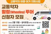 (뉴스핏 = 김호 기자) 파주시 교통약자이동지원센터는 교통약자의 이동권 확대와 여가 활동 증진을 위해 '교통약자 휠링(Wheeling) 투어 지원사업'을 3월부터 본격 운영한다고 밝혔다. “휠링(Wheeling)투어”는 휠체어(Wheel)와 힐링(Healing)의 의미를 결합한 무장애여행 지원사업으로 센터 등록 휠체어 이용자들이 가족과 함께 수도권(서울, 경기, 인천)의 주요 관광지와 문화·예술 공간을 안전하고 편리하게 방문할 수 있도록 돕는 여행·여가 지원사업이다. 신청접수는 2월 13일(금)부터 모집인원 마감까지 선착순 모집하며, 인원은 3월부터 12월까지 매월 2팀씩 총 20팀을 선정해 운영하고, 이용 형태는 ▲A형(주말 당일치기)과 ▲B형(Pick-drop/ 주말 1박2일)으로 출발지에서부터 왕복 이동을 지원한다. 신청방법은 공사 홈페이지 교통약자이동지원 등록·현황 페이지에 첨부된 신청서 양식을 다운받아 작성하여 센터방문 또는 이메일, 팩스접수로 진행한다. 공사 조동칠 사장은 “휠링투어를 통해 교통약자가 일상에서 여행과 여가를 자연스럽게 누릴 수 있기를 기대한다”며, “앞으로도 맞춤형 이동