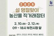 (뉴스핏 = 김호 기자) 부천시는 설 명절을 앞두고 2월 10일부터 12일까지 시청 정문 앞에서 ‘2026년 설 명절맞이 농산물 직거래장터’를 연다. 이번 직거래장터에는 공주시, 무주군, 옥천군, 진도군, 봉화군 등 자매결연 도시를 포함해 서산시, 안동시, 부천 지역 전통시장(한신시장, 제일시장), 팔도향우회(강원·호남)가 함께한다. 각 지역 참가 단체는 직접 재배한 농수산물과 특산품을 준비해, 시민들이 설 차례상과 선물용으로 활용할 수 있도록 다양한 성수품을 선보일 예정이다. 직거래장터에서는 사과, 알밤, 버섯 등 신선 농산물과 미역, 다시마, 김, 멸치, 젓갈 등 수산 가공품, 된장, 고추장, 참기름, 한과 등 지역 특산품이 판매된다. 판매 품목은 품질이 우수한 우리 농산물로, 시중가보다 평균 10% 이상 저렴하게 제공된다. 이수미 부천시 도시농업과장은 “이번 직거래장터는 설 명절을 앞두고 시민들이 전국의 다양한 농특산물을 한자리에서 만날 수 있도록 마련한 자리”라며 “가격 부담은 줄이고 명절의 따뜻한 정취는 더할 수 있도록 준비한 만큼, 많은 시민이 함께 즐기길 바란다”고 말했다.