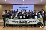 (뉴스핏 = 김호 기자) 여주시농업기술센터는 지난 5일 농업기술센터 친환경교육관에서 ‘2025년 농산물가공창업교육 2기 수료식’을 열고 올해 교육과정을 마무리했다. 이번 교육은 농산물 가공에 관심 있는 관내 농업인을 대상으로 모집하여 지난 10월 17일부터 매주 4시간씩 총 8회에 걸쳐 진행됐으며, 교육생들은 32시간의 교육을 통해 식품가공 창업에 필요한 핵심 지식과 실무 역량을 체계적으로 습득했다. 이날 수료식에서는 교육과정을 이수한 18명의 교육생에게 수료증이 전달됐다. 수료생들은 향후 농산물종합가공센터 이용 및 보조사업 우선지원 등 다양한 창업 지원 혜택을 받을 수 있게 된다. 전창현 기술기획과장은 “농산물종합가공센터를 이용하는 관내 농업인이 해마다 증가하고 있다”며 “앞으로도 전문 인력을 지속적으로 양성하고 농업인의 소득 증대에 실질적인 도움을 줄 수 있도록 노력하겠다”고 말했다.