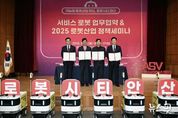(뉴스핏 = 김호 기자) 안산시는 지난 10일 (재)경기테크노파크 다목적실에서 관내 기업들과 ‘서비스로봇 업무협약·안산시 로봇산업 정책세미나’를 개최하고, 국내 최초로 캠퍼스형 자율주행 배달로봇 ‘개미’를 도입한다고 11일 밝혔다. 이날 행사는 ‘2025 로봇 인식확산 사업’의 일환으로 안산시의 로봇산업 육성 지원 방향을 공유하고 로봇 수요 기업의 지원 방안을 모색하기 위해 마련됐다. 행사에는 로봇공정 도입을 희망하는 관내 100여 개 기업과 안산로봇실무협의체 참여기관이 참여했다. 이번 로봇산업 정책세미나는 ▲로봇산업 현장간담회 ▲로봇기업 업무협약 ▲제조현장 로봇공정 사례 발표 ▲내년도 정부-경기도-안산시 로봇추진 사업설명회 ▲로봇공급기업 현장견학 등의 순으로 진행됐다. 이날 간담회에서는 관내 기업들이 로봇공정을 도입하면서 겪는 애로사항을 청취하는 시간이 마련됐으며, 이민근 시장은 직접 사업체 관계자들에게 시에서 제공 중인 지원 사항을 설명했다. 아울러, 최근 경제자유구역으로 지정된 사동 안산사이언스밸리지구(ASV)와 연계한 시 첨단로봇산업 육성 지원 방안 등을 소개해 기업인들의 관심을 끌었다. 캠