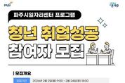 (뉴스핏 = 김호 기자) 파주시는 취업을 준비 중인 청년을 대상으로 맞춤형 취업지원 프로그램인 ‘청년 취업성공 프로그램’참여자를 모집한다. 이번 프로그램은 청년들의 취업 역량 강화를 목표로, 자기이해부터 직무분석, 자기소개서 작성, 실무면접 대비까지 취업 준비 전 과정을 체계적으로 지원하는 실전 중심의 취업지원 과정으로 구성됐다. 모집 기간은 2월 2일부터 2월 24일까지이며, 교육은 3월 4일부터 3월 5일까지 파주시 일자리센터에서 집합교육으로 진행된다. 이후 3월 6일부터 4월 10일까지는 참여자별 취업 준비 상황에 맞춘 1:1 맞춤 지도가 운영될 예정이다. 교육 대상은 파주시에 거주하는 청년 구직자와 관내 대학 및 특성화고 재학생이다. 주요 교육 내용은 ▲자기탐색 및 최신 취업 경향 이해 ▲자기소개서 심화 작성 ▲취업 수요 파악 및 목표 설정 ▲기업·직종·직무 분석 ▲실무 면접 대비 등으로 구성됐다. 특히 1:1 지도 기간에는 전문 지도자(멘토)가 참여자의 진로 방향과 취업 준비도를 종합적으로 진단해 개인별 맞춤 자문을 제공함으로써 실질적인 취업 경쟁력 향상을 지원할 계획이다. 이이구 민생경제