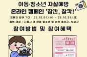 (뉴스핏 = 김수진 기자) 시흥시자살예방센터는 오는 10월 1일부터 31일까지 한 달간 아동ㆍ청소년을 대상으로 생명존중 인식 확산 캠페인을 운영한다고 30일 밝혔다. 이번 캠페인은 아동ㆍ청소년이 심리적 지지를 얻고 생명의 소중함을 되새기도록 돕는 한편, 이를 누리소통망(SNS)을 통해 또래와 나눌 수 있도록 마련됐다. 캠페인 참여 방법은 시흥시 관내 교육기관, 행정복지센터, 아동ㆍ청소년 관련 기관 등에 부착된 자살 예방 홍보 스티커를 촬영한 후, 개인 누리소통망(인스타그램)에 스토리 또는 게시물 형태로 올리면 된다. 이후 해당 게시물을 캡처해 정보무늬(큐알코드)를 통해 연결된 네이버 폼에 제출하면 참여가 완료된다. 이기연 시흥시자살예방센터장은 “이번 캠페인이 아동ㆍ청소년들이 온라인 공간에서 자신과 친구들의 소중함을 되돌아보는 계기가 되길 바란다”라며 “많은 청소년이 적극적으로 동참해 건강한 생명존중 문화가 확산하길 기대한다”라고 말했다.