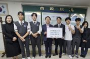 (뉴스핏 = 김수진 기자) 군포e비즈니스고등학교 마케팅과 학생들이 ‘청소년 비즈쿨(Biz-Cool)’ 창업체험 교육을 통해 얻은 수익금 전액을 군포시청에 기탁했다. 학생들은 전문교과 ‘매장판매’ 수업에서 배운 내용을 바탕으로 상품을 직접 기획·판매하며 창업의 전 과정을 경험했으며 이를 통해 얻은 수익금을 자발적으로 모금해 지역의 어려운 이웃을 돕기로 뜻을 모았다. 장인섭 교장은 “배움을 실천으로 이어가며 지역사회에 따뜻한 마음을 전한 학생들이 자랑스럽다”며 “앞으로도 실력과 인성을 겸비한 인재로 성장할 수 있도록 지원하겠다”고 말했다. 군포시 관계자는 “학생들이 스스로의 노력으로 얻은 결실을 지역의 어려운 이웃을 위해 기탁하여 주심에 감사드린다”며 “이러한 청소년들의 선한 영향력이 군포 전역으로 확산되길 바란다”고 말했다. 기탁금은 경기사회복지공동모금회를 통해 군포 관내 저소득 가정 지원에 사용될 예정이다.