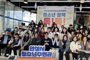 (뉴스핏 = 김수진 기자) 안성시청소년수련관은 지난 6일 ‘안성시청소년참여위원회’가 1년간 준비한 청소년 정책을 발표하는 ‘청소년 정책 톡!톡!’ 행사를 개최했다. 이날 행사에는 16명의 청소년참여위원회 위원을 비롯해 안성시장, 안성시 청소년 30여 명이 참석해 청소년이 직접 제안한 정책에 대해 논의하는 뜻깊은 시간을 가졌다. 청소년참여위원회는'청소년기본법' 제5조의2에 근거해 설치된 제도적 기구로, 청소년 정책 추진 과정에 청소년이 직접 참여하도록 마련된 장치다. 안성시는 매년 9~24세 청소년을 공개 선발해 청소년이 정책 수립 과정에 직접 참여할 수 있도록 지원하고 있다. 2025년 청소년참여위원회 위원들은 기존 청소년 정책 모니터링과 새로운 정책 제안을 위해 지역 축제·행사 등에 참여해 청소년 욕구 조사를 진행했으며, 매월 정기회의와 워크숍을 통해 안성시 청소년을 대표하는 정책을 마련하기 위해 노력해 왔다. 이번 행사에서는 ▲청소년 건강을 위한 학생 아침 간편식 모니터링 ▲청소년 진로 고민 해결을 위한 진로체험교육 모니터링을 통해 기존 정책의 현황과 개선 방안을 발표했다. 또한 신규 정책으로 ▲안성시 청소년을 위한 문화예술 프로그램 확대 ▲ 지역 간 격