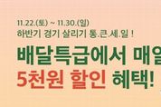(뉴스핏 = 김수진 기자) 경기도 공공배달앱 배달특급이 2025년 하반기 경기살리기 ‘통 큰 세일’에 합류한다. 경기도주식회사는 오는 30일 일요일까지 배달특급 전체 회원을 대상으로 배달특급 입점 가맹점에서 사용할 수 있는 5천원 할인 쿠폰을 제공한다고 23일 밝혔다. 해당 프로모션은 배달특급 애플리케이션 내 상반 ‘통 큰 세일’ 배너를 통해 쿠폰을 내려받아 결제 단계에서 사용할 수 있다. 예산 소진 시까지 회원당 매일 1회 내려받아 사용 가능하다. 배달특급은 지난 상반기에도 경기도와 경기도시장상권진흥원이 추진한 ‘2025년 상반기 경기 살리기 통 큰 세일’에 참여한 바 있다. 당시 배달특급은 경기도 지역화폐가 연동되는 공공배달앱 3사(배달특급, 땡겨요, 먹깨비) 가운데 가장 먼저 할인 쿠폰을 소진시켰고, 가장 많은 30억 원의 거래액을 기록하며 소비자와 소상공인의 상생을 이끌어 낸 바 있다. 한편, 배달특급의 모든 이벤트는 해당 상단 배너 기능을 통해 확인 가능하며, 지역에 따라 할인 조건과 금액이 달라질 수 있어 사전 확인이 필요하다.