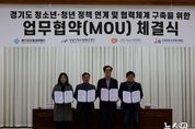 (뉴스핏 = 김수진 기자) 경기도미래세대재단은 12일 옛 경기도청사 신관 4층 대회의실에서 수원·성남·시흥시청소년청년재단과 ‘경기도 청년 정책 연계 및 협력체계 구축 업무협약’을 체결했다. 협약의 핵심은 ▲청년 분야 공동사업 기획 ▲정책·사업 정보 공유 ▲참여 기반 강화다. 4개 재단은 청년 일경험, 진로·취업, 사회참여를 잇는 연계형 프로그램을 공동 발굴하고, 공동 조사·연구와 정책 제안으로 협력 범위를 넓힐 계획이다. 참여기구와 네트워크 교류도 확대한다. 프로젝트와 캠페인을 함께 추진하고, 전문 인력과 강사, 공간, 콘텐츠, 운영 노하우 등 인적·물적 자원을 상호 연계한다. 협약 이후에는 정례 협의체를 운영해 공동 과제를 발굴하고 협력 사업을 단계적으로 확대한다. 김현삼 경기도미래세대재단 대표이사는 “청소년기 경험이 청년기 지원으로 자연스럽게 이어지도록 재단 간 협력을 본격화하는 출발점”이라며 “공동 과제를 꾸준히 발굴하고 협업 체계를 촘촘히 다져 정책이 현장에서 성과로 이어지게 하겠다”라고 말했다.