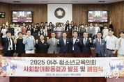 (뉴스핏 = 김수진 기자) 경기도여주교육지원청은 15일 여주시의회 본회의장에서 '2025 여주 청소년교육의회 발표회 및 폐원식'을 개최했다. 이번 행사는 지난 6개월 동안 여주 청소년들이 직접 기획·참여한 사회참여활동 결과를 공유하고, 의정활동을 마무리하는 자리로 마련됐다. 이날 행사에는 김상성 교육장을 비롯해 박두형 여주시의회 의장과 여섯 명의 시의원, 청소년교육의회 의원 36명 및 학부모가 참석해 청소년들의 성장과 노력을 함께 축하했다. 여주교육지원청 김상성 교육장은 격려사에서 “청소년의 목소리가 지역사회를 변화시키는 힘이 된다”며 “여러분의 작은 실천이 여주의 미래를 밝히는 등불이 되기를 바란다”고 전했다. 또한 박두형 여주시의회 의장은 “여주시의회도 여러분의 제안을 귀 기울여 듣고, 청소년이 행복한 도시를 만드는 데 함께하겠다”고 격려했다. 이날 발표회에서는 청소년의회 5개 상임위원회(환경·복지·인성·시설·교육)가 각 분과별로 진행한 사회참여활동과 정책제안서를 공유했다. 환경위원회는 ‘지속 가능한 여주를 위한 생활 속 실천 방안’을, 복지위원회는 ‘보행자 안전을 위한 정책 제안’을, 인성위원회는 ‘봉사활동을 주변에 공유하고 실천할 수 있는 방안’을,
