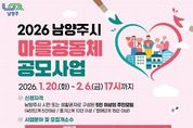 (뉴스핏 = 김호 기자) 남양주시는 1월 20일부터 2월 6일까지 ‘2026년 마을공동체 공모사업’참여 공동체를 공개 모집한다. 이번 공모는 주민의 자발적 참여와 소통을 바탕으로 지역 문제를 해결하고 공동체 문화를 확산하기 위해 마련됐다. 모집 분야는 △나눔활동 △정약용활동 △마을돌봄활동 △자율주제활동 등 4개다. 특히 ‘정약용활동’은 ‘정약용의 도시’라는 시의 정체성을 반영한 분야로, 지난해에 이어 지속 운영된다. 새롭게 신설된 ‘마을돌봄활동’은 사회적 고립 예방을 위한 이웃 간 관계 형성과 서로돌봄 활동을 지원하는 데 중점을 둔다. 사업 참여 공동체는 성장 단계에 따라 △씨앗 △줄기 △열매단계로 구분된다. 씨앗단계는 5인 이상 주민 모임이 신청할 수 있으며, 선정 시 400만 원이 지원된다. 줄기단계는 10인 이상 주민 모임으로 1회 이상 참여 경험이 있어야 하며, 600만 원을 지원한다. 열매단계는 15인 이상 주민 모임으로 2회 이상 참여 경험이 있어야 하며, 800만 원을 지원받게 된다. 신청은 1월 20일부터 2월 6일 오후 5시까지 시청 자치협력과 공동체팀 방문 또는 전자우편을 통해 접