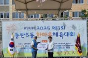 (뉴스핏 = 김수진 기자) 지난 21일 ‘제3회 동탄5동 한마음 체육대회’가 동탄5동 체육진흥회 주관으로 다원이음터 축구장에서 성황리에 개최됐다. 이번 대회는 주민들의 화합과 소통을 통해 건강을 증진하고 공동체 의식을 다지기 위해 마련됐으며, 400여 명의 주민과 내빈들이 함께해 활기찬 분위기를 더했다. 행사는 풍물 공연과 색소폰 연주로 흥겨운 막을 올렸고, 개회식에서는 모범시민 표창 수여와 내빈들의 축사가 이어졌다. 또한, 동탄5동 체육진흥회와 감탄정형외과가 의료 지원·후원 협약을 체결해 향후 체육대회를 비롯한 다양한 동 행사에서 의료 지원과 후원을 지속하기로 약속하며 지역사회 상생의 의미를 더했다. 본 경기는 볼풀공 서바이벌, 큰 공 배구, 줄다리기 등 남녀노소가 모두 참여할 수 있는 명랑운동회 종목으로 진행돼 웃음과 열기가 가득했다. 이어진 태권도 축하공연은 참가자들에게 힘찬 에너지를 전하며 분위기를 한층 끌어올렸다. 또한 체험부스 운영과 경품 추첨 이벤트도 마련돼 가족 단위 참가자들에게 다채로운 즐길 거리를 제공했다. 풍성한 상품과 이벤트는 주민들의 큰 호응을 얻으며 축제의 열기를 더했다. 윤영호 동탄5동장은 “오늘 체육대회는 주민 모두가 함께 뛰고