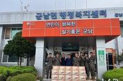 (뉴스핏 = 김호 기자) 28사단 질풍부대 태풍 가족봉사단은 22일 추석 명절을 맞아 군남면 취약계층 지원을 위해 생필품 키트 30상자를 군남면 행정복지센터(면장 김복성)에 전달했다. 태풍 가족봉사단은 매년 관내 취약계층을 위해 생필품 키트 지원, 주거환경개선 봉사 등을 지원하고 있으며, 지역의 어려운 이웃을 위해 지속적으로 따뜻한 도움의 손길을 보내고 있다. 28사단 질풍부대 신현승 중령과 김진혁 원사는 “다가오는 명절을 맞아 주위의 어려운 이웃들을 위해 도움을 줄 수 있어 기쁘게 생각한다”며 “앞으로도 우리 주위에 어려움을 겪고 있는 이웃을 위해 질풍부대 태풍 가족봉사단이 어디든 찾아 나서겠다”고 전했다. 김복성 군남면장은 “매년 따뜻한 마음으로 이웃사랑을 실천하는 태풍 가족봉사단에 감사한다”며 “기부 물품이 의미있게 쓰일 수 있도록 도움이 필요한 가정에 전달하겠다”고 말했다. 한편 군남면 맞춤형복지팀은 기부받은 물품을 6·25 참전용사, 독거노인, 한부모가족 등 주변 어려운 이웃에게 가가호호 방문해 전달할 예정이다.