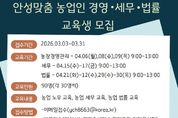 (뉴스핏 = 김수진 기자) 안성시농업기술센터가 지역 농업인의 안정적인 영농 활동을 돕기 위해 오는 31일까지 ‘안성맞춤 농업인 경영·세무·법률 교육’ 교육생을 모집한다고 11일 밝혔다. 이번 교육은 전문가 특강을 통해 농가 운영 중 발생할 수 있는 경영적, 법적 문제를 사전에 예방하고 해결할 수 있는 역량을 키워주기 위해 마련됐다. 교육은 오는 4월 6일부터 30일까지 주제별 지정된 날짜에 진행된다. 모집 분야는 ▲농업 경영 ▲농업 세무 ▲농업 법률 등 3개 과정이며, 분야별로 30명씩 총 90명을 선발한다. 신청 인원이 초과할 경우 내부 선발 기준에 따라 교육생을 최종 선정할 예정이다. 신청 자격은 농업 경영에 관심 있는 안성시민이라면 누구나 가능하며, 접수는 3월 31일까지다. 참여를 희망하는 시민은 이메일을 보내거나 농업기술센터 농업지도과(보개원삼로 219)를 방문해 신청하면 된다. 시 관계자는 “농업인의 눈높이에 맞춘 경영·법률·세무 전문가 특강이 농가 역량을 강화하는 좋은 기회가 될 것”이라며, “안성 농업의 내실을 다지고 싶은 시민 여러분의 많은 관심과 참여를 바란다”고 말했다.