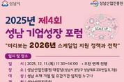 (뉴스핏 = 김호 기자) 성남산업진흥원은 '2026년 스케일업 지원 정책'을 주제로 오는 11일 11시 30분부터 2025년 제4회 '성남기업성장포럼'을 개최한다고 3일 밝혔다. ‘성남기업성장포럼’은 2024년 9월 첫 포럼 개최 이후, 매회마다 참석자가 증가하여, 지난 10월 제3회 포럼에는 170여명의 기업 임직원과 10여개 기업지원기관이 참여하는 등 성남시 기업 성장을 위한 대표 네트워크로 성장하고 있다. 성남시 소재 기업 임직원은 누구나 포럼 참석이 가능하며, 성남산업진흥원 홈페이지를 통해 참석 신청을 할 수 있다. 이번 포럼에서는 '기업지원 미니설명회'에서 시니어 오너 기업의 엑시트(Exit) 전략에 대한 법무법인 지평의 발표에 이어 창업진흥원과 중소기업기술정보진흥원이 2026년 스케일업 지원방향과 주요 사업을 소개한다. 김윤정 창업진흥원 혁신사업화본부 본부장은 창업 초기단계와 성장단계 기업에 대한 내년도 지원 내용을 설명하고, 차인호 중소기업기술정보진흥원 사업총괄관리실 책임연구원은 중소기업 기술혁신(R&D)을 위한 주요 사업을 안내한다. 또한 성남시 소재 2개사가 자사의 기술과 비즈니스 모델을 소개하고 협력을 제안하는 개방형 혁신 프로그램도