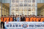 (뉴스핏 = 김수진 기자) 파주소방서는 3월 27일 오전 10시, 파주시 국립민속박물관에서 현장 간부회의 'SOS(Spot On Safety)'를 처음으로 실시했다. 주요 소방대상물을 직접 방문해 재난 위험요소를 확인하고 개선방안을 도출하기 위해 마련된 이번 회의는, 서류 중심의 기존 방식에서 벗어나 현장에서 대상물의 실제 안전관리 상태를 점검하고 잠재적 위험요인을 사전에 발굴하는 새로운 형태의 현장 밀착형 회의다. 최근 관내 소방대상물은 첨단시설·박물관·대형 물류창고 등 복합화·대형화 추세가 뚜렷하다. 그러나 기존의 정형화된 보고 방식으로는 데이터와 현장 실태 간 괴리가 발생해 잠재적 위험요소를 사전에 파악하는 데 한계가 있었다. 파주소방서는 특히 대형화·복합화된 시설 증가로 재난 위험성이 커지는 상황에서 현장 중심 대응체계를 강화하기 위해 이 새로운 회의 방식을 기획했다. 이날 회의는 대상물 사전분석, 현장 확인, 관계자 의견 청취, 위험요소 토론 등 단계별로 진행됐다. 아울러 박물관 큐레이터의 안내로 전시시설과 수장고 등을 둘러보며 주요 유물과 시설 특성에 대한 설명을 듣는 기관 견학도 병행했