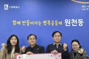 (뉴스핏 = 김호 기자) 지난 17일 경기중앙지방법무사회 수원지부는 원천동 저소득 지역주민들을 돕기 위해 성금 100만 원을 원천동행정복지센터(동장 김선혁)에 후원했다. 이번에 전달된 성금은 경제적 어려움을 겪고 있는 원천동 저소득 지역주민들을 위해 사용될 예정으로, 지역사회 나눔 문화 확산에 기여할 것으로 기대된다. 경기중앙지방법무사회 수원지부 관계자는 “작은 정성이지만 지역 내 어려운 이웃들에게 도움이 되길 바란다”며 “앞으로도 지역사회와 함께하는 다양한 나눔 활동을 지속해 나가겠다”고 밝혔다. 김선혁 원천동장은 “어려운 이웃을 위한 따뜻한 나눔에 깊이 감사드린다”며 “후원금은 도움이 꼭 필요한 저소득 주민들을 위해 소중히 사용하겠다”고 전했다. 한편, 경기중앙지방법무사회 수원지부는 매년 꾸준히 성금을 전달하여 지역사회 복지 증진을 위해 힘쓰고 있다.
