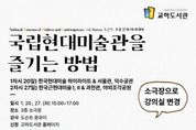 (뉴스핏 = 김호 기자) 파주시 교하도서관은 오는 20일과 27일, 15시부터 17시까지 교하도서관 3층 소극장에서 전문 안내원(도슨트) 초청 강연 프로그램 ‘국립현대미술관을 즐기는 방법’을 운영한다. 이번 프로그램은 국립현대미술관 윤유미 전문 안내원(도슨트)을 초청해, 국립현대미술관 서울관·덕수궁관·과천관의 상설전시를 중심으로 한국 현대·근현대 미술의 흐름을 이해하고 미술관을 보다 깊이 있게 감상할 수 있는 방법을 안내하기 위해 마련됐다. 1차시 강연은 1월 20일에 진행되며, 국립현대미술관 서울관과 덕수궁관의 주요 전시를 중심으로 ‘한국현대미술의 하이라이트’전시를 다룬다. 2차시 강연은 1월 27일에 열리며, 과천관 상설전시인 ‘한국근현대미술 I·II’와 ‘야외조각공원’을 소개할 예정이다. 강연은 청소년부터 성인까지 총 30명을 대상으로 계획됐으나, 신청자가 많아 더 많은 시민이 참여할 수 있도록 장소를 3층 소극장으로 변경해 운영한다. 이재면 교하도서관장은 “이번 강연을 통해 시민들이 현대미술을 보다 친근하게 접하고, 미술관 관람의 즐거움이 한층 넓어지는 계기가 되길 바란다”라고 밝혔다.