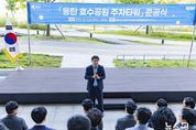 (뉴스핏 = 김수진 기자) 파주시 산내마을 주민은 1일 '복합 커뮤니티 센터의 조속한 건립 요청'에 대한 서명서를 파주시의회 박대성 의장에게 제출했다. 현 산내마을 복합 커뮤니티 센터 부지는 본래의 용도가 아닌 물놀이장 및 주차장으로 임시 운영되고 있어 부지계획 본래의 취지와 맞지 않게 사용되고 있는 상황이다. 산내마을9단지 입주자 대표는 파주시의회를 방문해 박대성 의장에게 복합 커뮤니티 센터의 조속한 건립의 필요성을 설명하며, 복합 커뮤니티 센터 건립 계획을 수립하고, 사업 진행일정과 내용을 투명하게 공개 하는 등 운정지역 전반의 문화·체육·교육시설 부족 문제를 해결하기 위한 종합적인 장기계획수립을 요청했다. 박대성 의장은 "산내마을을 비롯한 운정지역 주민들의 요구에 깊이 공감하며, 복합 커뮤니티 센터 건립이 조속히 추진될 수 있도록 관계 부서와 긴밀히 협의하겠다"라며 "시민들의 삶의 질 향상을 위한 문화·체육·교육시설 인프라 확충에 의회 차원의 관심과 지원을 아끼지 않겠다"라고 밝혔다.