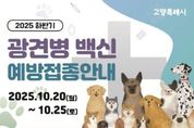 (뉴스핏 = 김호 기자) 고양특례시는 2025년 하반기 광견병 예방접종을 10월 20일부터 실시한다고 밝혔다. 광견병은 주로 야생동물에 의해 전파되며 감염된 반려동물에서 사람에게 전염될 수 있는 치명적인 인수공통전염병이다. 이에 따라 매년 1회 반려동물에게 광견병 예방백신을 접종하는 것이 중요하다. 올해 상반기에 접종을 마친 반려동물의 경우 재접종 하지 않아도 된다. 접종 기간은 오는 10월 20일부터 10월 25일까지로 3개월령 이상 개를 대상으로 광견병 예방접종을 실시한다. 접종 기간 중 반려동물과 함께 거주지 인근 지정 동물병원(37개 병원/고양시 누리집 참조)을 방문하여 무료로 광견병 예방접종을 할 수 있다. 예방접종은 반드시 동물등록이 돼 있어야 지원받을 수 있으며 동물등록을 하지 않은 반려견은 동물병원에서 동물등록(자부담 1만원)하고, 접종을 받으면 된다. 임신 또는 이상 소견이 있는 경우에는 접종이 불가능하므로 사전에 수의사와 충분히 상담해야 한다. 이번 광견병 예방접종 지원에 참여하는 동물병원은 고양시 누리집(정보공개- 고양소식- 새소식 – 광견병