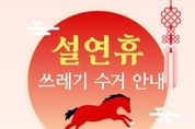 (뉴스핏 = 김호 기자) 고양특례시 일산서구는 설 연휴 기간 주민 불편을 최소화하고 쾌적한 도시환경을 유지하기 위해 오는 14일부터 18일까지 5일간 생활폐기물 관리대책을 추진한다. 구는 ▲비상근무체계를 통한 신속한 청소행정 서비스 제공 ▲재활용품 분리배출·생활폐기물 감량 홍보 ▲연휴 기간 수거일 사전 안내 등을 실시해 올바른 쓰레기 배출을 유도할 방침이다. 이달 14일과 18일을 집중 수거일로 지정해 생활폐기물과 음식물 관련 폐기물을 정상 수거하고, 설 연휴 기간인 2월 15일부터 17일까지는 수거를 중단한다. 이에 따라 연휴 기간 중 생활쓰레기 배출 자제와 수거 일정 조정사항을 사전 홍보할 계획이다. 또한 연휴 기간, 총 17명 규모의 청소대책 상황반과 대응반을 편성·운영해 생활쓰레기 관련 민원과 무단투기 신고에 신속히 대응하고 쓰레기 투기 상습지역을 중심으로 순찰과 집중 수거를 병행한다. 구 관계자는 “설 연휴에도 주민들이 불편 없이 쾌적한 환경에서 명절을 보낼 수 있도록 청소행정 운영에 최선을 다하겠다”며 “주민들께서도 수거일을 준수하고 올바른 분리배출과 쓰레기 감량에 적극 협조해 주시길 바