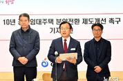 (뉴스핏 = 김호 기자) 이현재 하남시장은 17일 “10년 공공임대아파트에 거주하는 무주택 서민들의 주거 안정을 위해 공공임대아파트의 분양전환가 산정기준을 5년 공공임대아파트와 동일한 수준으로 변화될 수 있도록 국토교통부에 제도 개선을 요청했다”고 밝혔다. 이현재 시장은 이날 시청 상황실에서 진행된 기자회견을 통해 “10년 공공임대아파트의 분양전환가 산정기준이 5년 공공임대아파트 보다 매우 불리하게 되어있어 무주택 서민들의 내 집 마련 꿈을 산산이 조각내고 있다”며 이같이 말했다. 문제의 핵심은 10년 임대와 5년 임대주택 간의 ‘분양전환가격 산정 방식’에 있다. 현재 10년 공공임대주택은 분양전환가격이 ‘현재 시세’인 감정평가금액을 넘지 못하도록만 되어 있다. 즉, 최근 몇 년간 폭등한 부동산 시세가 사실상 그대로 분양전환가격이 되는 구조다. 반면, 5년 공공임대주택은 ‘최초의 건설원가’와 ‘현재 시세(감정평가금액)’를 더한 뒤 2로 나눈(산술평균한) 금액으로 분양전환가격이 책정된다. 쉽게 말해, 5년 임대 입주자는 최초의 저렴했던 ‘원가’ 혜택을 절반이라도 받지만, 10년 임대 입주자는 그 혜택 없이 100% 현재 시세로 집을 사야 하는, 매우 불리한 상