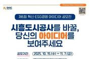(뉴스핏 = 김수진 기자) 시흥도시공사는 15일부터 11월 7일까지 ‘제6회 시흥도시공사 혁신·ESG경영 아이디어 공모전’을 개최한다. 이번 공모전은 공사의 주요 사업과 연계된 ‘디지털 기반 경영 구현’ 및 ‘지역상생‧협력’ 2개 분야로 진행되며, 공사에 관심 있는 시민 누구나 참여할 수 있다. 공모전 참가를 위해서는 공사 누리집 내 ‘혁신 아이디어 공모전’ 게시판에서 신청서를 내려받아 작성한 후 게시판 등록 또는 담당자 이메일로 제출하면 된다. 공사는 이번 공모전을 통해 시민의 시각에서 공사의 혁신 방향을 모색하고, 지역사회와의 상생을 강화하는 등 실질적 사업 발굴로 이어질 수 있도록 연계할 계획이다. 우수 아이디어로 선정된 제안은 최우수 1건(50만 원), 우수 1건(30만 원), 장려 2건(각 20만 원) 총 4건에 대해 온누리상품권이 수여되며, 선착순 참여자 5명과 일반 참여자에게도 추첨 이벤트를 통해 소정의 기프티콘을 제공할 예정이다. 자세한 사항은 공사 누리집을 통해 확인할 수 있다. 유병욱 사장은 “작은 아이디어 하나가 공사의 변화를 이끌 수 있다”며 “시민이 체감할 수 있는 다양한 사업을 발굴할 수 있도록 많은 분의 관심과 참여를 부탁드린다”라