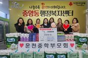 (뉴스핏 = 김수진 기자) 오산시 중앙동 행정복지센터는 지난 5일 운천중학교 학부모회로부터 설 명절을 맞아 지역 내 저소득 어르신을 위한 생필품 20세트를 후원받았다고 밝혔다. 이번 후원은 설 명절을 홀로 보내거나 경제적 어려움을 겪고 있는 독거 어르신들에게 실질적인 도움을 전하고자 마련됐다. 후원 물품은 샴푸, 휴지, 치약·칫솔, 비누 등 일상생활에 꼭 필요한 생필품으로 구성됐으며, 관내 독거 어르신 20가구에 전달될 예정이다. 정유선 운천중학교 학부모회장은 “명절을 앞두고 홀로 지내시는 어르신들께서 이웃의 따뜻한 정을 느끼시길 바라는 마음으로 회원들과 뜻을 모았다”며 “작은 정성이지만 어르신들께서 건강하고 따뜻한 설 명절을 보내시는 데 도움이 되길 바란다”고 전했다. 백경희 중앙동장은 “지역사회를 위해 이웃사랑을 실천해 주신 운천중학교 학부모회에 깊이 감사드린다”며 “기탁해 주신 물품은 정성 어린 마음을 담아 도움이 필요한 어르신들께 소중히 전달하겠다”고 밝혔다.