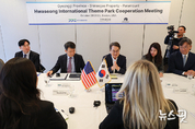 (뉴스핏 = 김수진 기자) 미국을 방문 중인 김동연 경기도지사가 화성 국제테마파크 조성사업의 원활한 추진을 위해 글로벌 콘텐츠기업 파라마운트사, 신세계프라퍼티와 함께 테마파크사업 진행 현황을 공유하고 향후 협력방안에 대해 의견을 나눴다. 김동연 지사는 미국 현지시각 28일 미국 보스턴에서 마리 막스(Marie Marks) 파라마운트 수석 부문장, 이임용 신세계프라퍼티 CSR상무와 회담을 진행했다. 김동연 지사는 “국제테마파크는 화성과 경기도민이 정말 오랫동안 기다렸던 프로젝트”라며 “먼저 당초 계획보다 2배 크기로 대규모 투자를 결정해 주신 신세계프라퍼티에 감사를 드린다. 지금의 관광·문화·엔터테인먼트 산업의 발전 추세로 봤을 때 그와 같은 투자확장을 한 것은 아주 적절했다고 생각한다”고 감사 인사를 전했다. 화성 국제테마파크 사업에는 당초 4조 5000억 원이 투입될 계획이었으나 신세계프라퍼티는 단계적 개발을 통해 사업비를 9조 5000억 원 규모로 늘리기로 했다. 5조가량 투자 금액이 확대된 것이다. 김 지사는 이어, 또 다른 협력 파트너인 파라마운트사에 “파라마운트의 스토리와 상상력이 이번 투자에 얹혀져서 전 세계적인 명소를 만들 것으로 기대하고 있다”
