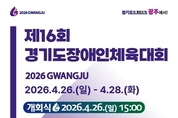 (뉴스핏 = 김수진 기자) 경기도 장애인 체육인들의 최대 축제인 ‘제16회 경기도장애인체육대회 2026 광주’가 오는 26일부터 28일까지 3일간 광주시 일원에서 개최된다. 이번 대회는 경기도장애인체육회가 주최하고 광주시 및 광주시장애인체육회가 주관하며, 경기도의 후원으로 진행된다. 총 31개 시·군에서 선수 2487명을 비롯해 임원 및 보호자 등 약 5100여 명이 참가하여, 게이트볼, 탁구, 수영 등 총 17개 종목에서 열띤 경쟁을 펼칠 예정이다. 대회의 시작을 알리는 개회식은 26일 오후 3시 광주시 G-스타디움에서 열린다. 이날 개회식에는 경기도 행정1부지사를 비롯한 도 및 시·군 주요 인사와 선수단 등 약 2000여 명이 참석할 예정이며, 선수단 입장, 개회 선언, 대회기 게양, 선수대표 선서, 성화 점화 등 공식행사가 진행된다. 또한 식전공연과 축하공연 등 다채로운 문화행사가 함께 펼쳐져 대회의 분위기를 한층 고조시킬 예정이다. 이번 대회는 게이트볼, 보치아, 론볼 등 장애인 스포츠 특성을 반영한 종목을 포함해 총 17개 종목으로 운영되며, 도내 장애인 체육 활성화와 선수 발굴 및 육성에 중요한 역할을 할 것으로 기대된다. 특히 시·군 간 화합과