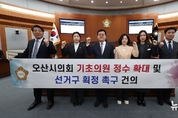 (뉴스핏 = 김수진 기자) 오산시의회(의장 이상복)는 18일 제300회 임시회 제2차 본회의에서 ‘오산시 기초의원 정수 확대 및 선거구 획정 촉구 건의문’을 의결했다. 이 자리에서 시의원들은 한목소리로 제도 개선을 강력히 촉구했다. 시의회는 “1991년 지방자치제가 출범할 당시 오산의 인구는 6만 7천 명, 예산은 241억 원이었지만 지금은 인구 27만 명에 예산 1조 1400억 원으로 도시 규모가 성장했다”며 “하지만 기초의원 수는 34년째 단 한 명도 늘지 않은 7명에 머물러 있다”고 지적했다. 이어 “현재 오산시 의원 1명이 대표하는 주민 수는 약 3만 8천 명으로, 전국 평균 1만 7천 명의 두 배가 넘는다”며 “이런 구조에서는 상임위원회 구성조차 어려워 행정 견제와 정책 심의 등 의회 본연의 역할을 제대로 수행할 수 없다”고 강조했다. 또한 “오산은 최근 5년간 인구가 22.7% 증가해 전국에서 세 번째로 높은 인구 성장률을 기록한 도시”라며 “의원 정수가 합리적 수준으로 확보되지 않는다면 정부의 균형발전 전략을 구호에 그칠 뿐”이라고 목소리를 높였다. 6월 지방선거를 앞두고 국회 차원의 논의가 지연되고 있는 상황에 대해서도 강하게 비판했다. 시의회