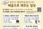 (뉴스핏 = 김수진 기자) 용인특례시는 25일부터 26일까지 수지구에 있는 용인시 평생학습관에서 특별강좌 수강생을 모집한다고 17일 밝혔다. 이번 특별강좌는 4주 과정으로, 시민의 수요를 반영해 실생활에 도움이 되는 다양한 강좌로 구성됐다. 총 8개 강좌를 운영하며 112명의 수강생을 모집한다. 주요 프로그램은 ▲인문교양 분야(K-세계유산, 현장에서 멋보기) ▲뷰티 분야(체형 진단 패션스타일 찾기) ▲정보화 분야(디지털 사진 입문: 스마트폰으로 배우기) ▲조리 분야(우리 집 김치 만들기) ▲문화예술 분야(쉽고 편한 보컬 발성법 야간) 등이다. 교육은 3월 30일부터 4월 24일까지 진행되며 만 19세 이상 용인시민이라면 누구나 신청할 수 있다. 용인에 주소를 둔 재외국민, 결혼이민자, 용인 소재 기업에 재직 중인 직장인도 참여 가능하다. 접수는 용인시 평생학습관 누리집을 통해 선착순으로 진행된다. 수강료는 강좌별 수업 시간에 따라 1만 원에서 1만 5000원이며, 재료비는 별도로 개인이 부담한다. 시 관계자는 “시민이 배움의 가치를 느낄 수 있도록 실생활에 도움