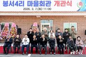 (뉴스핏 = 김호 기자) 파주시 파주읍 봉서4리 마을회관 개관식이 지난 7일 김경일 파주시장, 박정 국회의원을 비롯한 관내 기관장, 사회단체장, 지역 주민 등 100여 명이 참석한 가운데 개최됐다. 이날 행사는 기념사 및 축사, 마을회관 건립을 위해 애써주신 유공자에 대한 표창장 수여, 현판 제막식, 시설 관람 순으로 진행됐다. 파주읍 봉서산로 125번길 12-3에 위치한 봉서4리 마을회관은 대지면적 300㎡, 건축면적 129.78㎡의 지상 2층 규모로, 총사업비 3억 8,800만 원이 투입되어 조성됐다. 경로당과 주방시설 등을 갖춘 이 마을회관은 그동안 마땅한 쉼터가 없었던 봉서4리 주민들에게 편안하게 머물 수 있는 공간을 제공하게 됐다. 황명구 봉서4리 이장은 “마을회관 개관까지 지원을 아끼지 않은 파주시에 감사드리며, 오늘을 기점으로 봉서4리가 더 살기 좋은 마을이 되길 바란다”라고 전했다. 장연희 파주읍장은 “봉서4리 마을회관 신축을 진심으로 축하드린다”라며, “마을회관이 주민들이 서로 소통하고 교류하며 정을 쌓아가는 봉서4리 공동체의 중심이 되길 기대한다”라고 말했다.