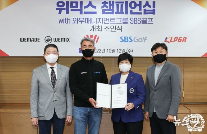 (뉴스핏 = 박선화 기자) 한국여자프로골프투어 주식회사(KLPGT)가 KLPGA 사무국에서 ㈜위메이드, ㈜와우매니지먼트그룹, ㈜SBS미디어넷과 ‘WEMIX 챔피언십 with 와우매니지먼트그룹 SBS골프’ 대회 개최 조인식을 가졌다고 밝혔다.