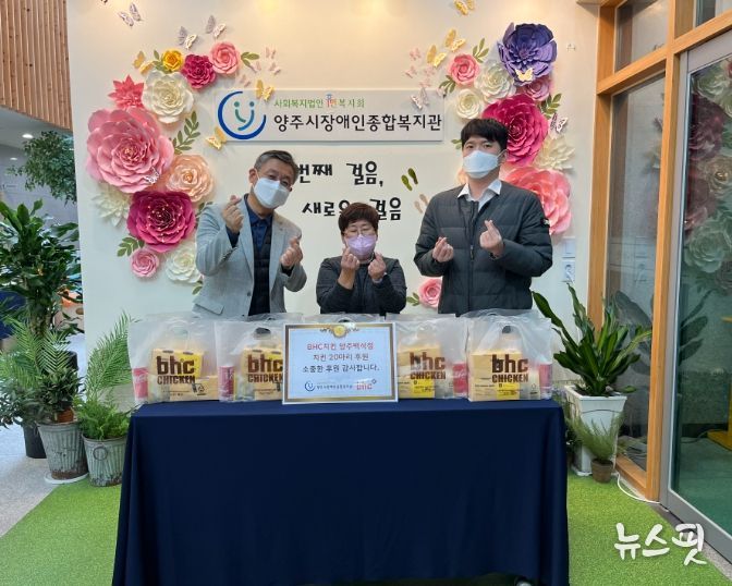 이날 복지관에 전달된 치킨 20마리는 양주시 관내 재가 장애인 가정에 지원됐다. BHC 양주백석점은 앞으로도 양주시장애인종합복지관과 손 잡고 지역 사회에서 지속적으로 후원활동을 이어나갈 예정이다.