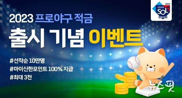 신한은행 모바일 앱 쏠의 야구전용 플랫폼 쏠야구를 통해 정규시즌 기간 중 응원 구단 승리마다 최대천 마이신한포인트를 제공하는 ‘캘린더’와 월 최대한도인만원을 입금했거나 응원 구단 승리 다음날천원 이상 추가 납입시 최대천 마이신한포인트를 제공하는 ‘세이브 포인트’ 등 다양한 콘텐츠를 선보일 예정이다또한‘신한 리그 적금’ 출시를 기념해월일까지 적금 가입고객 선착순만명에게 최대천 마이신한포인트를 제공하는 이벤트도 진행한다