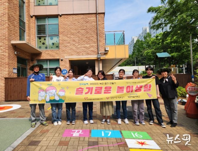 경기도 ‘생명사랑 자원봉사’ 사업인 이번 활동은 국공립 어린이집에 놀이공간 만들기를 주제로 계원예술대학교 벽화 동아리 서정국 교수를 비롯한 10명의 학생이 참여했다.