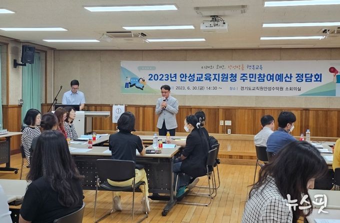 (뉴스핏 = 김호 기자) 안성교육지원청은 경기교육예산 및 재정 운영 상황에 대한 주민의 관심과 이해도를 증대하고, 2024년 예산 편성 시 반영할 의견을 수렴하고자 6월 30일 경기도교직원안성수덕원 소강당에서 ‘주민참여예산제 정담회’를 개최했다.