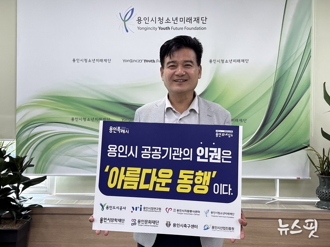 (뉴스핏 = 박선화 기자) 용인시청소년미래재단 황재규 대표이사는 인권 존중 공감대 형성과 인권문화 확산을 위해 인권 존중 릴레이 ‘인권 표어’ 캠페인을 진행했다.
