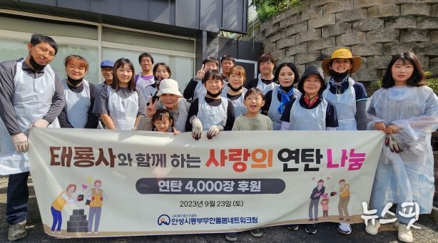 (뉴스핏 = 민선기 기자) 안성시동부무한돌봄네트워크팀은 지난 23일 태룡사의 후원으로 에너지 취약계층 8가정에 4,000장의 연탄 나눔을 실천했다.