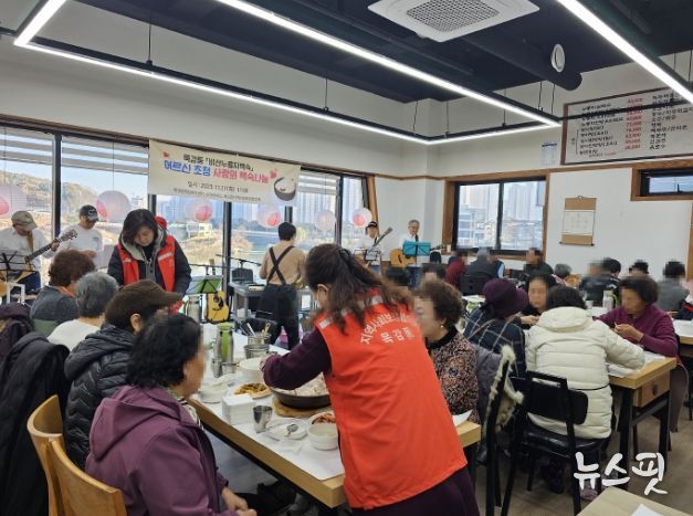 이날 식사 자리에는 안양시 부흥동의 통기타동아리가 함께해 어르신들을 위해 통기타 연주를 선보여 식사의 즐거움을 배가했다.